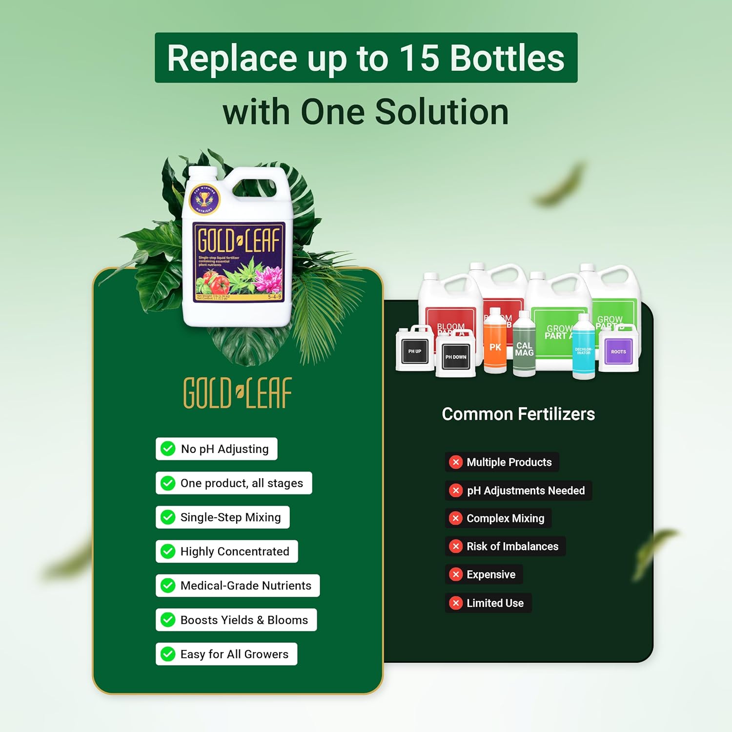 - Optimized pH for Peak Growth: You will never have to worry about your pH again. Gold Leaf keeps your crops in the ideal range of 5.5 to 6.5 throughout the grow, with no adjustments required.
